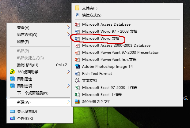 方法一:新建Word文档